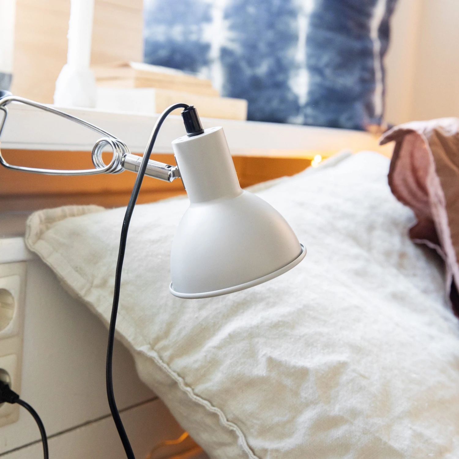 Dieser praktische Ansteckstrahler hat einen industriellen Charakter mit einem Metallschirm und einem stabilen Clip, der sich an verschiedenen Stellen befestigen lässt. Das Anschlusskabel ist 1,8 Meter lang und verfügt über einen Schalter.