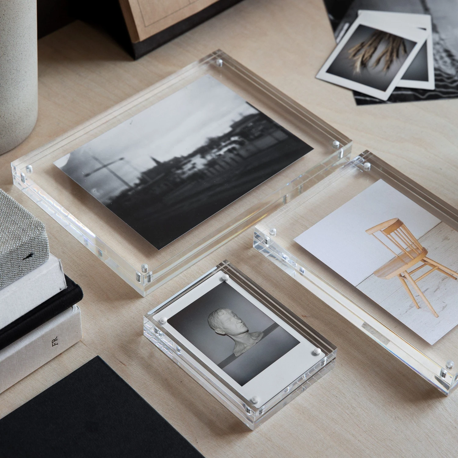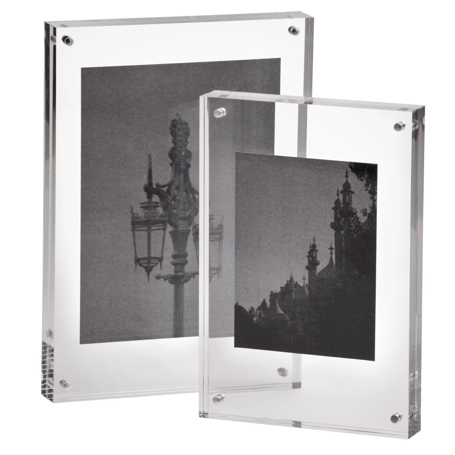 Fotorahmen aus Acryl in zwei Teilen, die mit Magneten zusammengehalten werden.