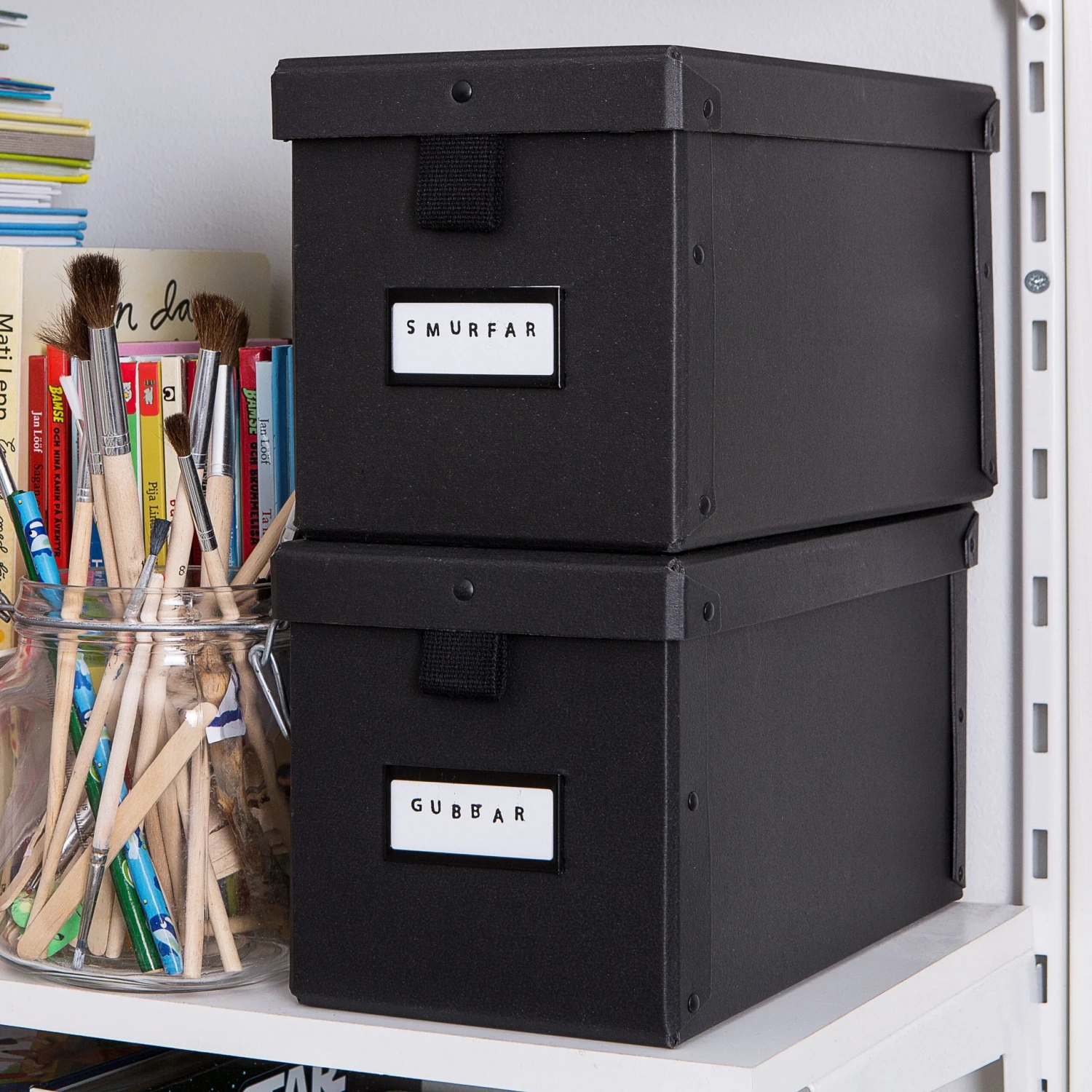 Die schmale Box ist aus Recyclingpappe in Europa hergestellt und an den Kanten von Hand genietet. Außerdem hat sie eine große Lasche aus Leder, wodurch du sie einfach aus dem Regal oder Schrank ziehen kannst. Erhältlich in verschiedenen Größen und Farben.