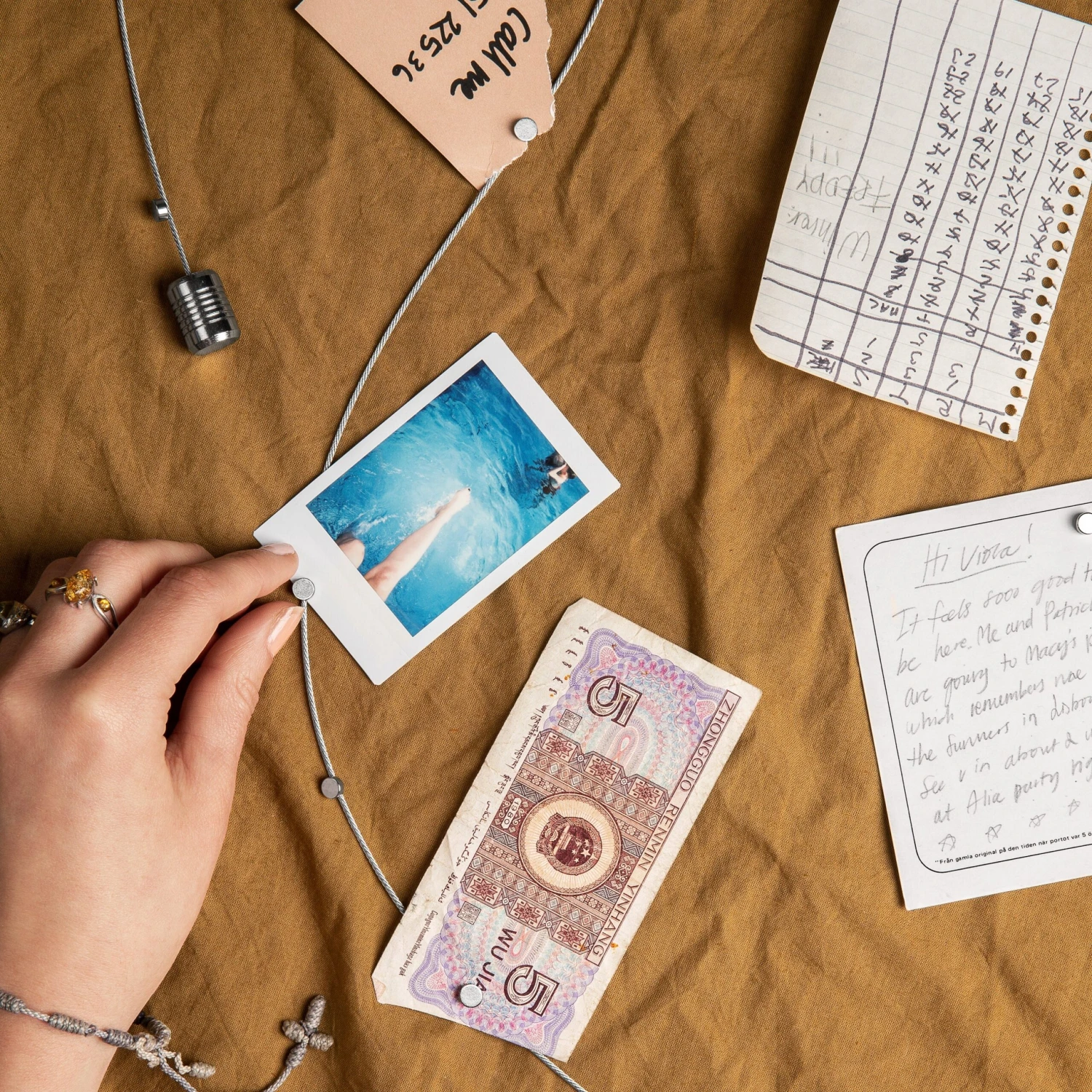 Cleveres Seil mit 8 Magneten. Die perfekte Lösung, um Bilder, Notizen und Fotos aufzuhängen, oder warum nicht die Lieblingsrezepte in der Küche! Besonders toll für Postkarten: Hänge die Karte am Magneten auf und du siehst sowohl das Bild als auch den Gruß auf der Rückseite!