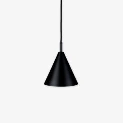 Stilvolle Deckenleuchte aus schwarz matt lackiertem Metall. 120 cm schwarzes textilummanteltes Kabel, kegelförmige Deckenabdeckung und Verbindung im Lieferumfang enthalten. Lichtquelle und Deckenanschluss sind separat erhältlich.