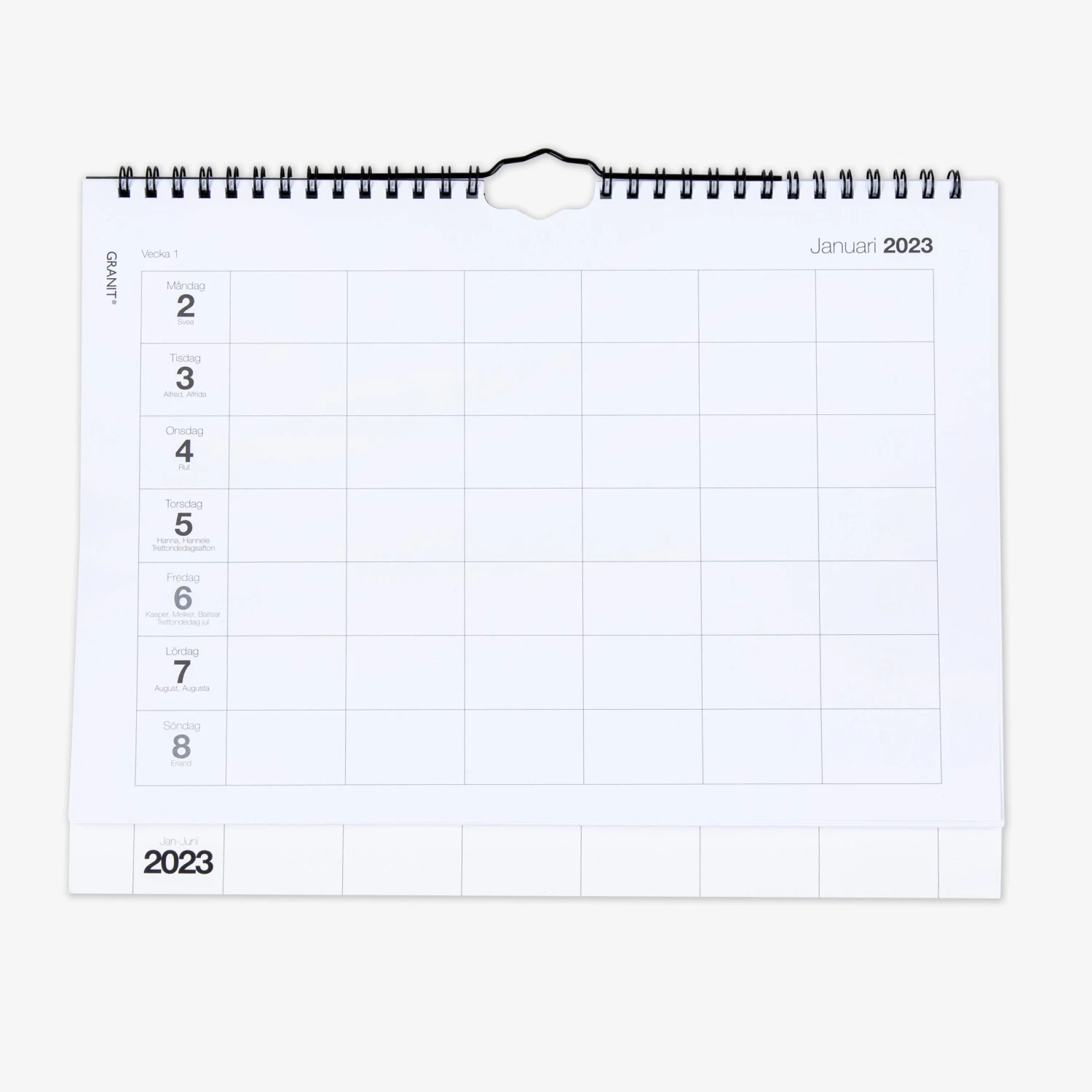 Jahreskalender für 2023, Januar bis Dezember. Mit diesem übersichtlichen Wochenkalender mit einem Blatt für jede Woche und sechs Spalten behältst du den Überblick über den Tagesablauf deiner Familie.