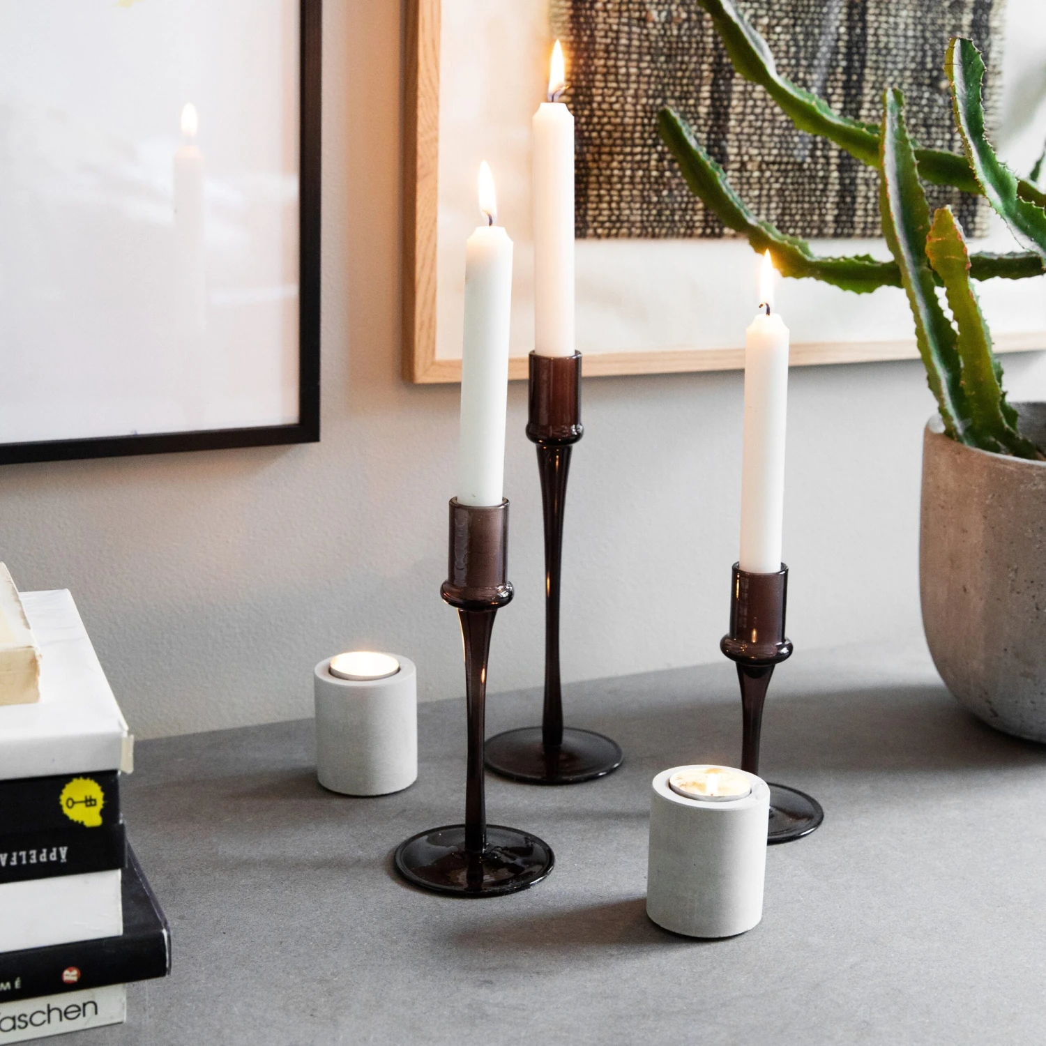 Kerzenständer aus Beton für sowohl Kerzen als auch Teelichter, passt wunderbar in jedes Zuhause.