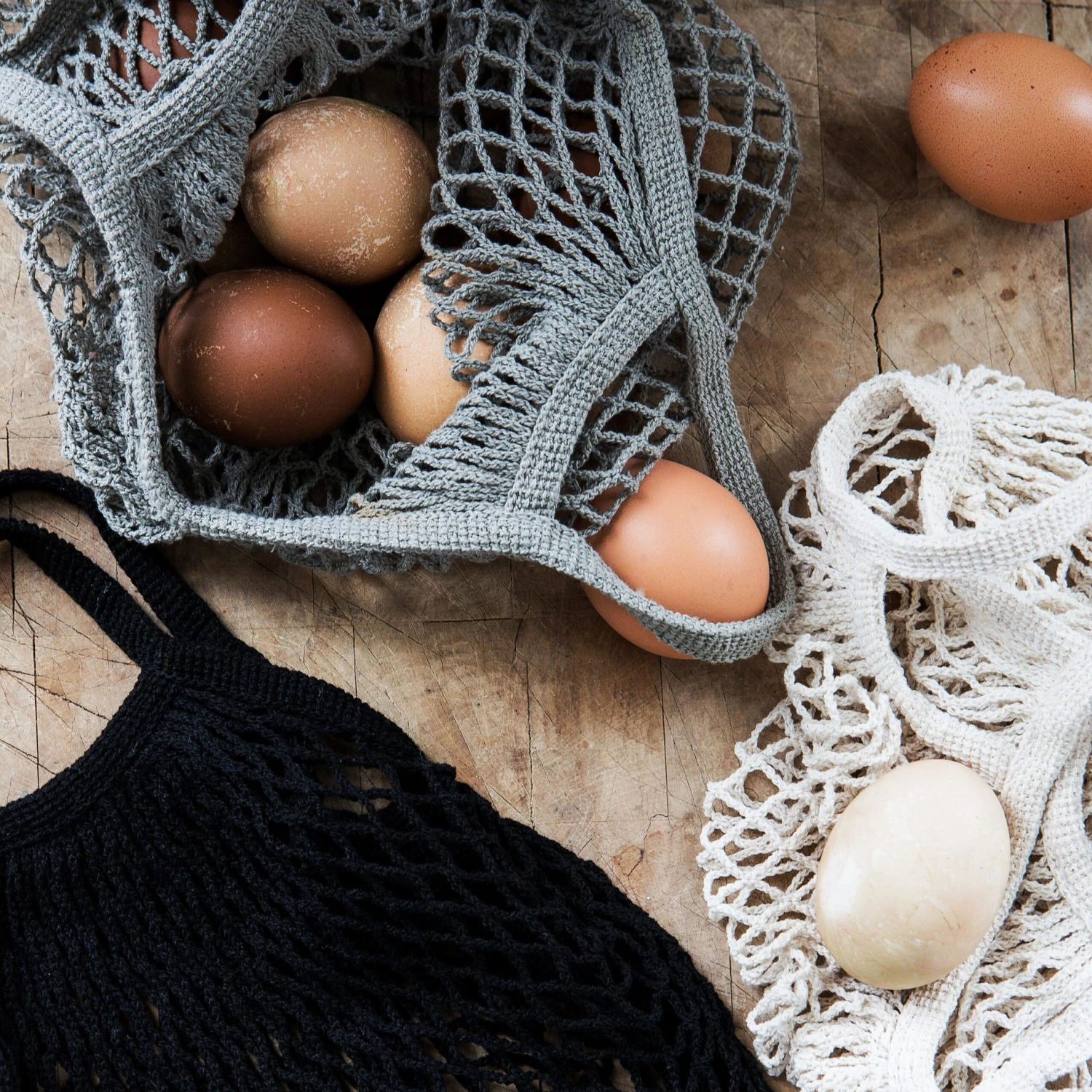 Schwarze Netztasche in kleinerer Ausführung, aus Baumwolle und Polyester. Eine intelligentere und fairere Alternative zur Einkaufstüte. In dieser kleinen Netztasche lassen sich z. B. auch Obst und Gemüse in der Küche aufbewahren. Zwiebeln, Paprika und Tomaten sind in dem Netzbeutel gut sichtbar. Auch am Strand ist die Netztasche ein smarter Begleiter, da sich in ihr kein Sand sammelt. Für ein Handtuch und einen Badeanzug in einer kleineren Größe ist sie perfekt.