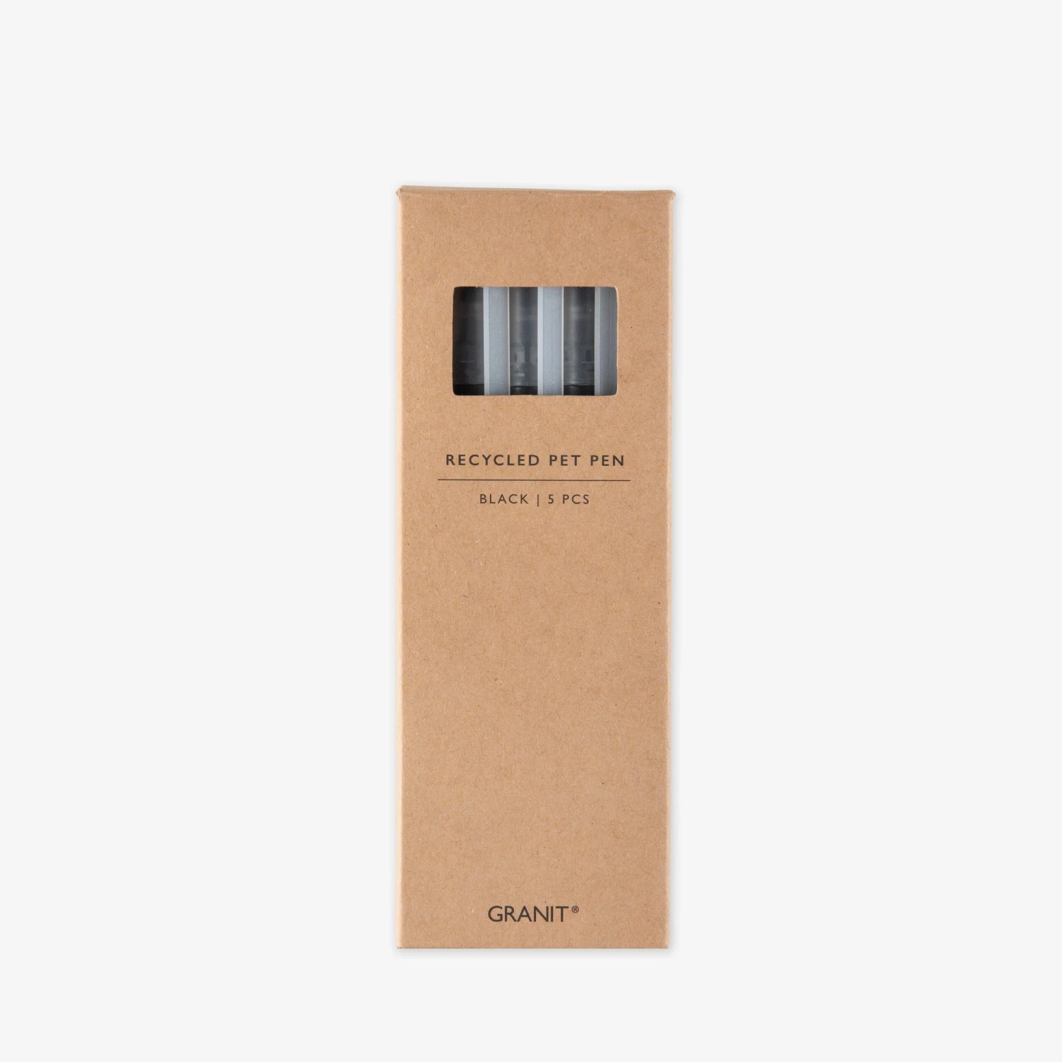 | 5er-Pack transparente Gelstifte mit schwarzer Tinte, die gut auf dem Papier gleiten. Die Stifte bestehen zu 100 % aus recyceltem PET und sind auch in Einzelverpackungen erhältlich. L 13,8 cm. |
