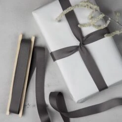 Graues Polyester-Textilband auf Holzspule Länge: 7 m Breite: 1,5 cm