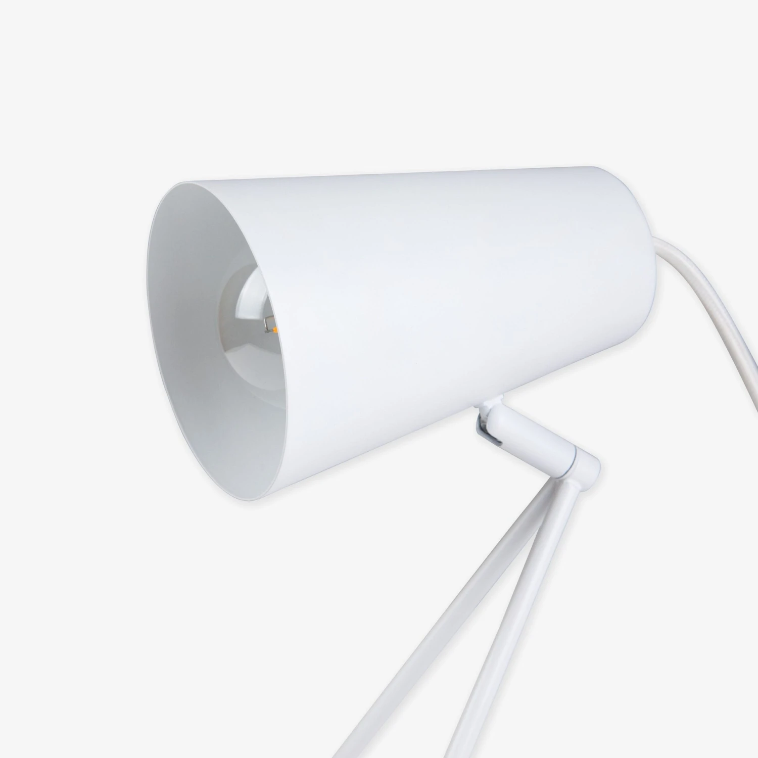 Robuste Tischleuchte aus weißem mattlackierten Metall. Diese stilvolle Lampe macht in jedem Raum eine gute Figur. Die Lampe hat einen E27-Sockel und ein 130 cm langes weißes Textilkabel mit An/Aus-Schalter. Lichtquelle separat erhältlich.