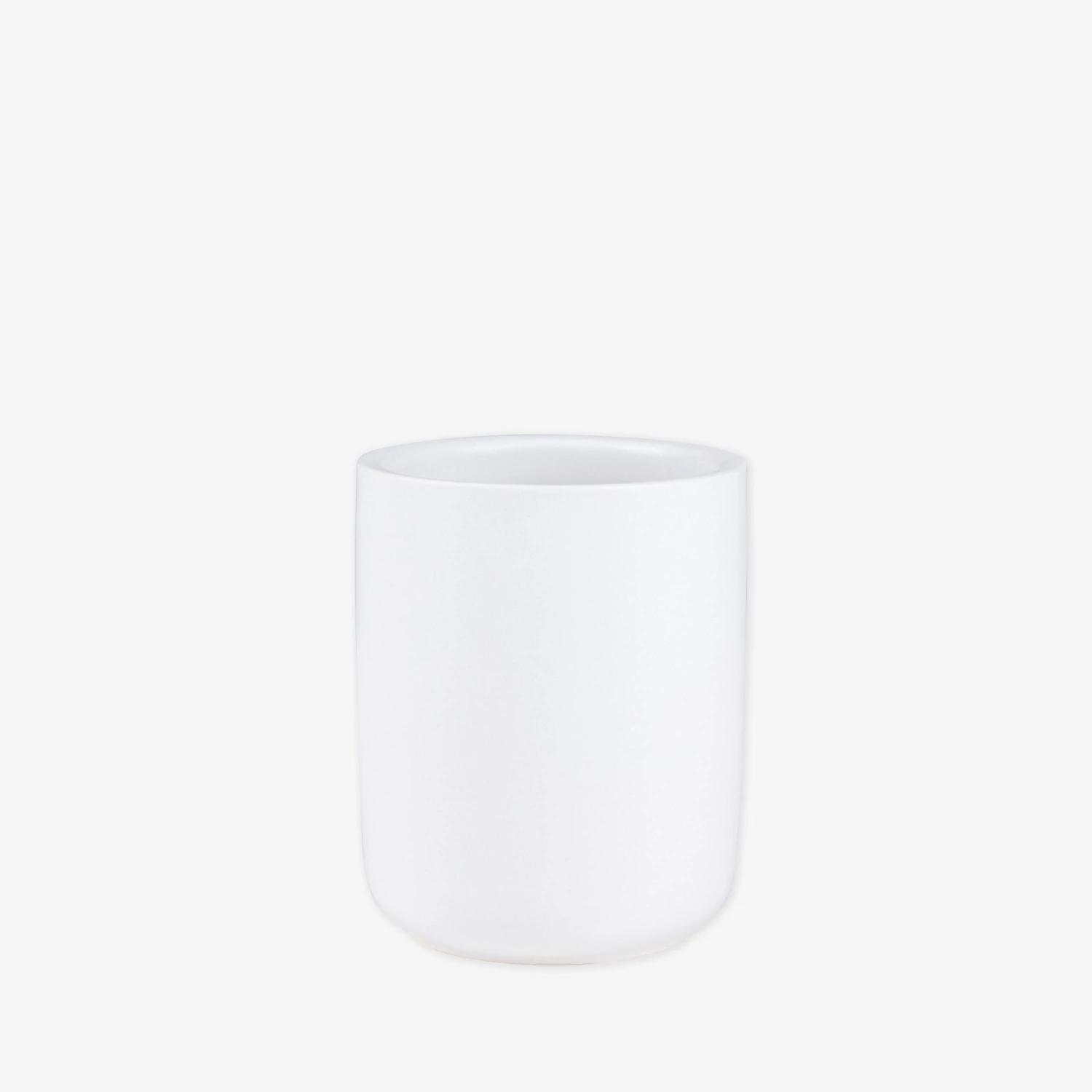 | Stilvoller Zahnbürstenbecher aus mattweißem Dolomitstein. Passend dazu gibt es eine Toilettenbürste und einen Seifenspender aus dem gleichen Material.Maße: H 10 Ø 8,2 cm. |